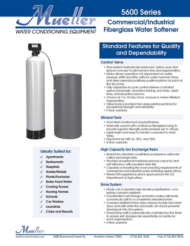 Flyer-Fiberglass series 5600 [1in.] inlet/outlet. Models WSF-30-56, WSF-45-56, WSF-60-56