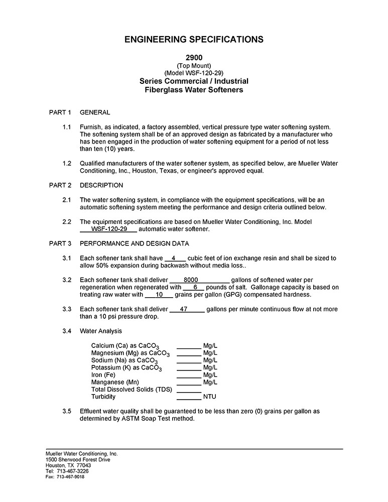 Flyer-Fiberglass series 2900 [2in.] inlet/outlet. [Single, Twin, Twin-alt., Triplex] Models WSF-120-29, WSF-150-29, WSF-180-29, WSF-210-29, WSF-240-29
