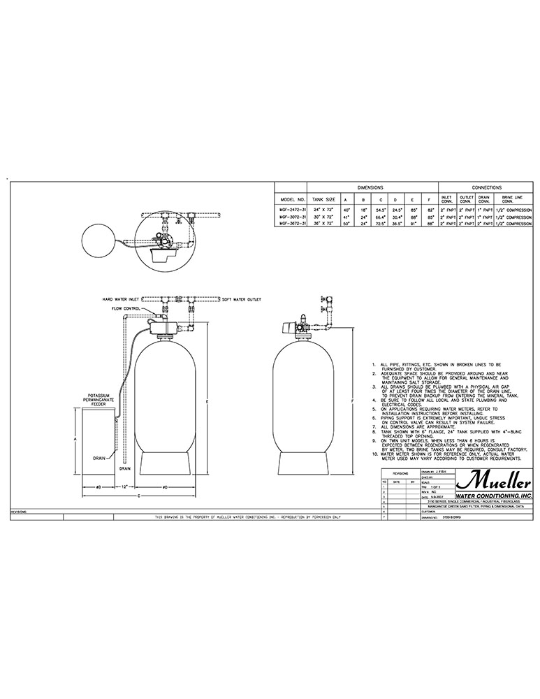 Flyer-Fiberglass series 9500 [1.5in.] inlet/outlet. Twin-alt. Models WSF-60-95TA, WSF-90-95TA, WSF-120-91TA, WSF-150-95TA, WSF-180-95TA, WSF-210-95TA, WSF-240-95TA