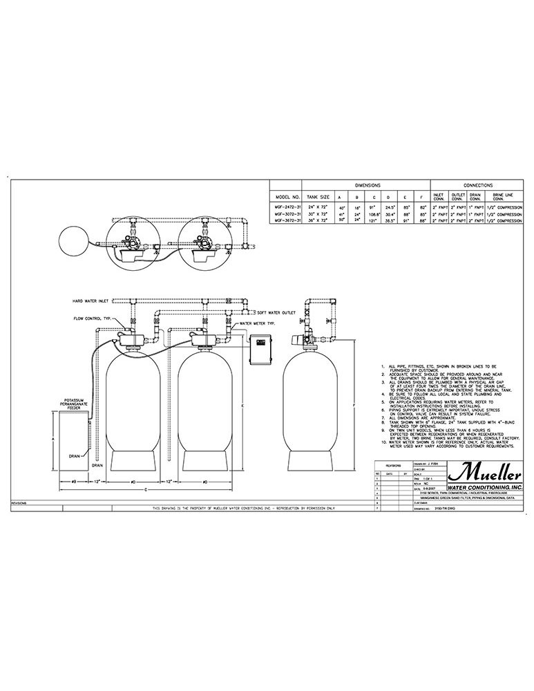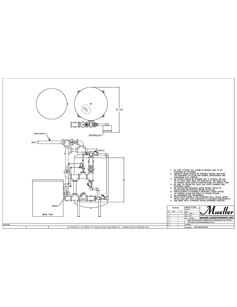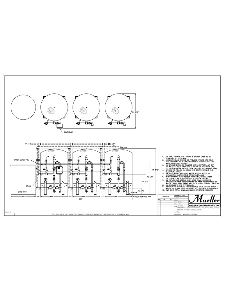 Drawing-Steel series softener, 2,400,000 grain exchange, triplex model, 3" inlet/outlet