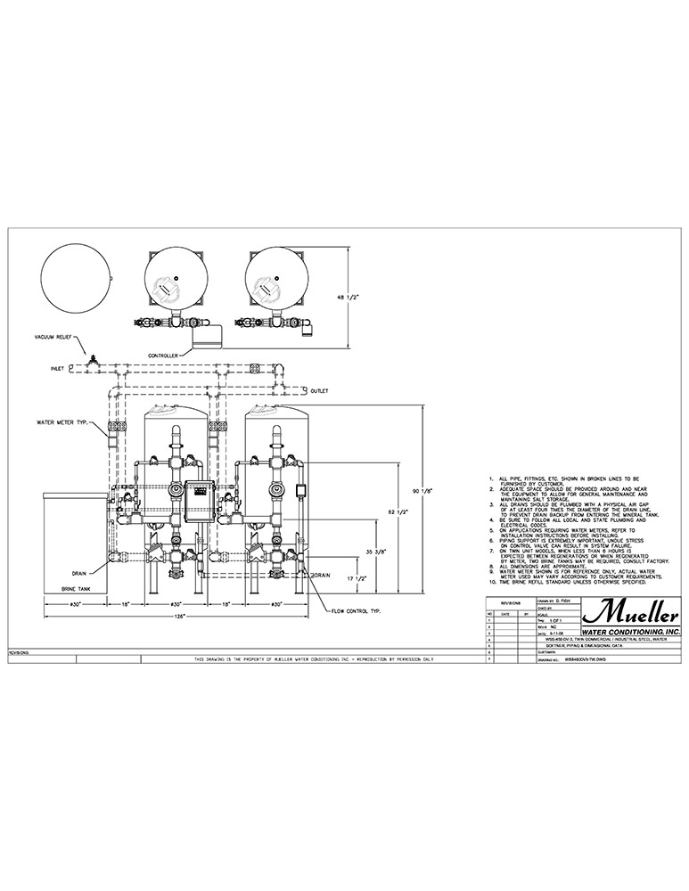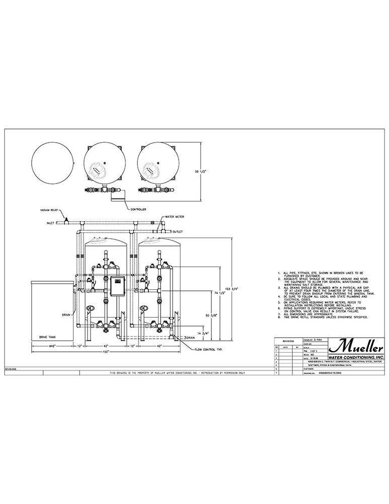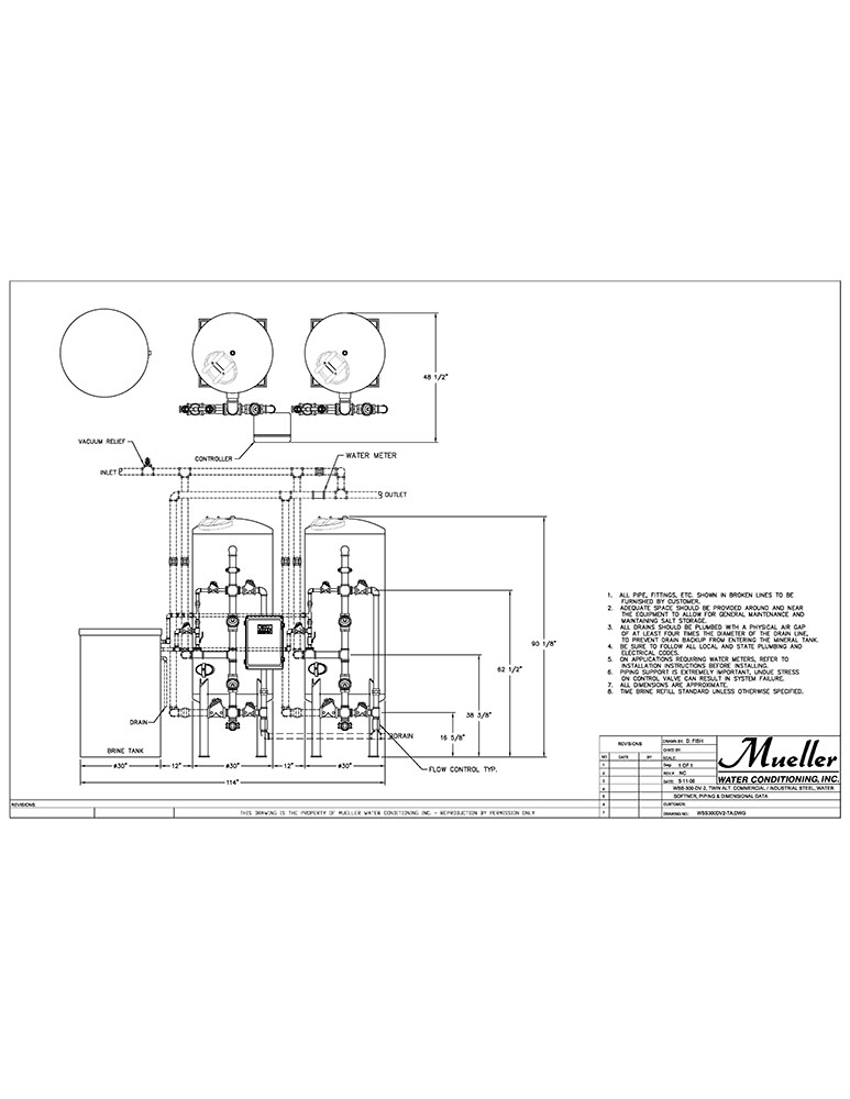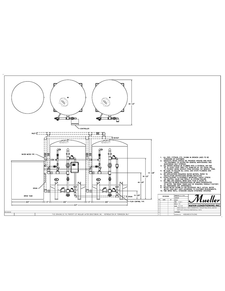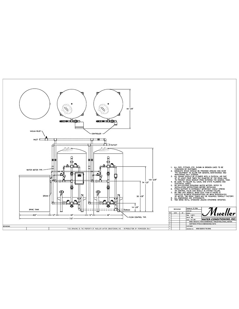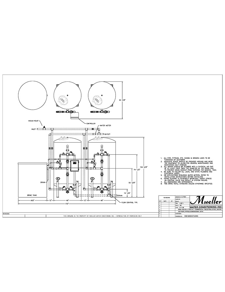Drawing-Steel series softener, 750,000 grain exchange, twin-alt. model, 2" inlet/outlet