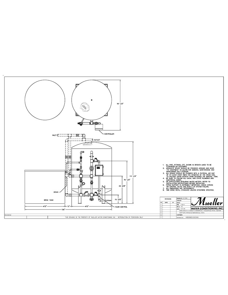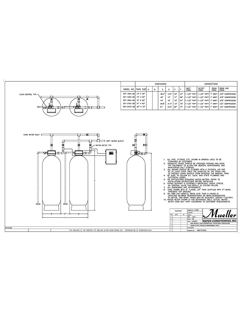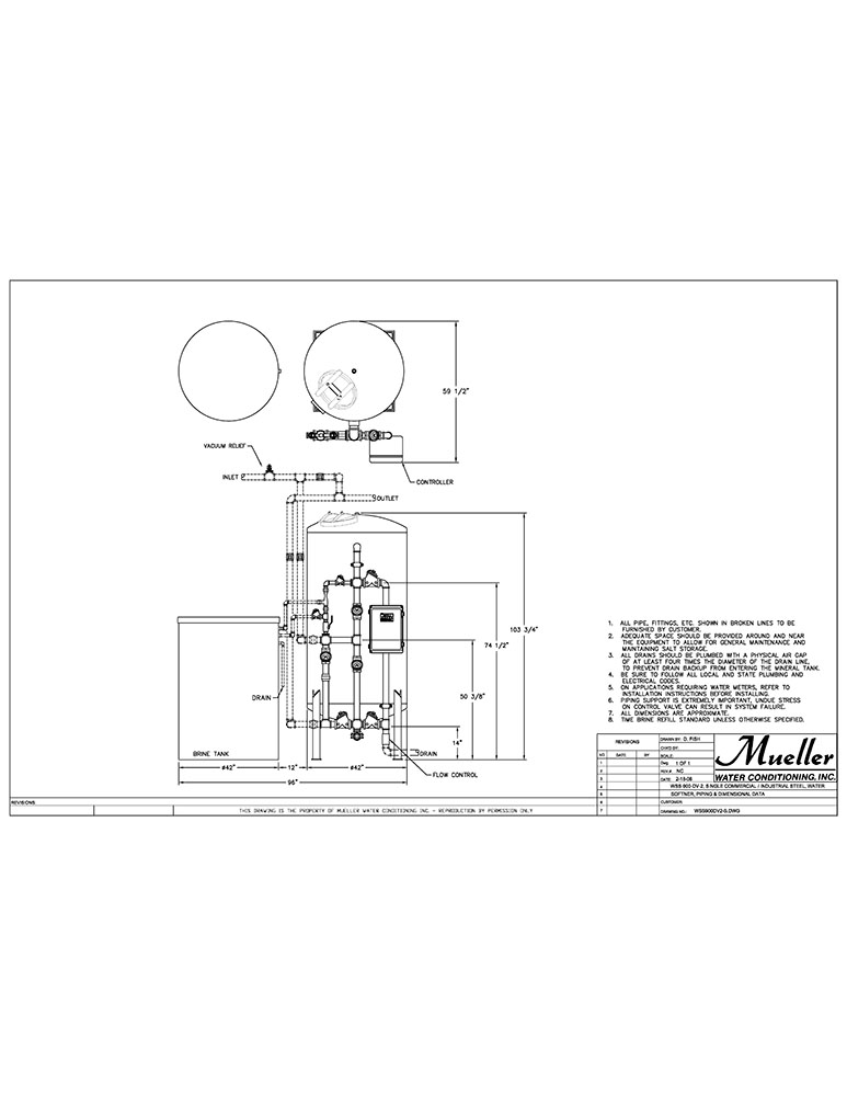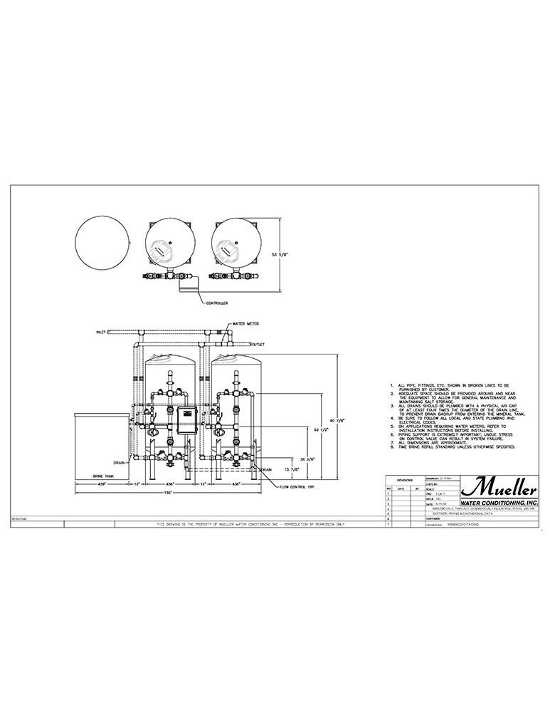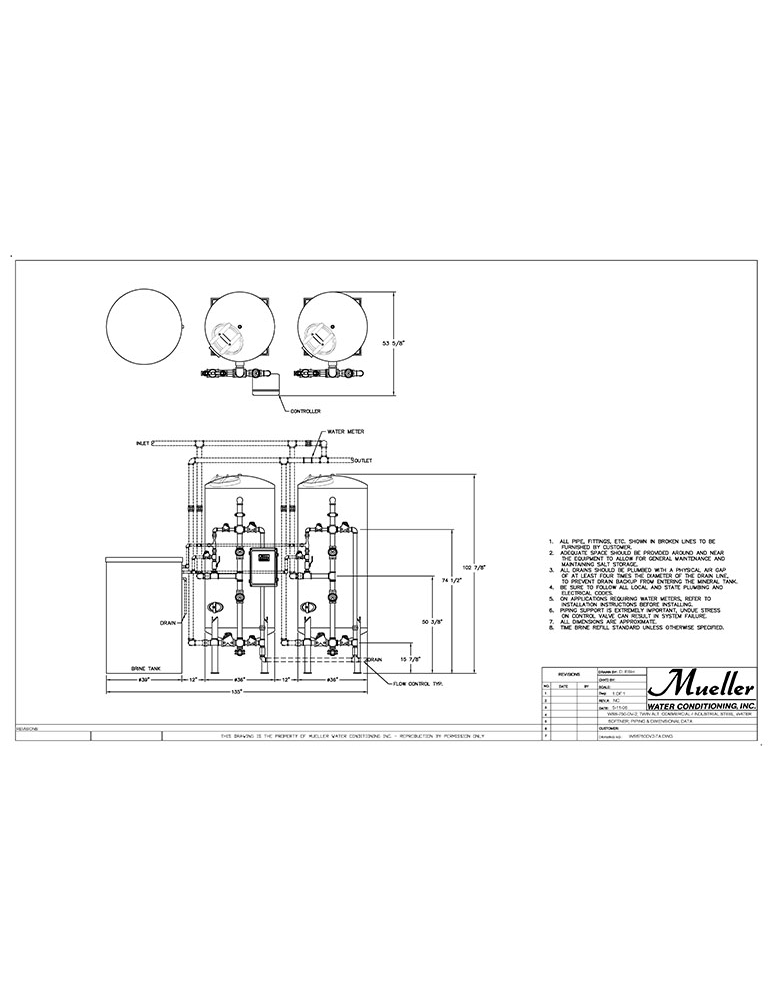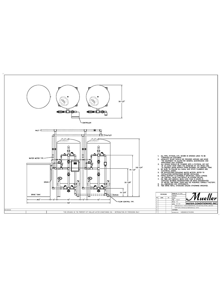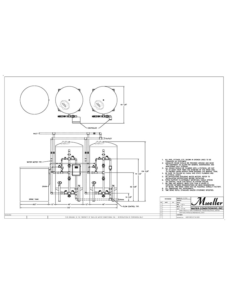 Drawing-Steel series softener, 750,000 grain exchange, twin-alt. model, 2" inlet/outlet