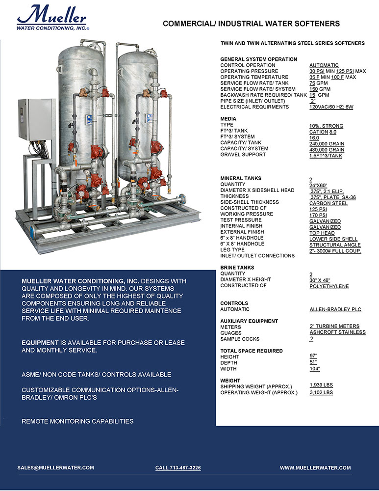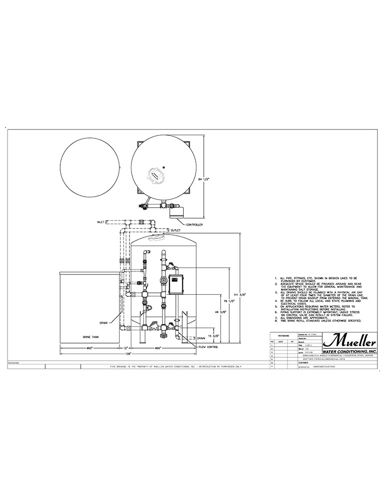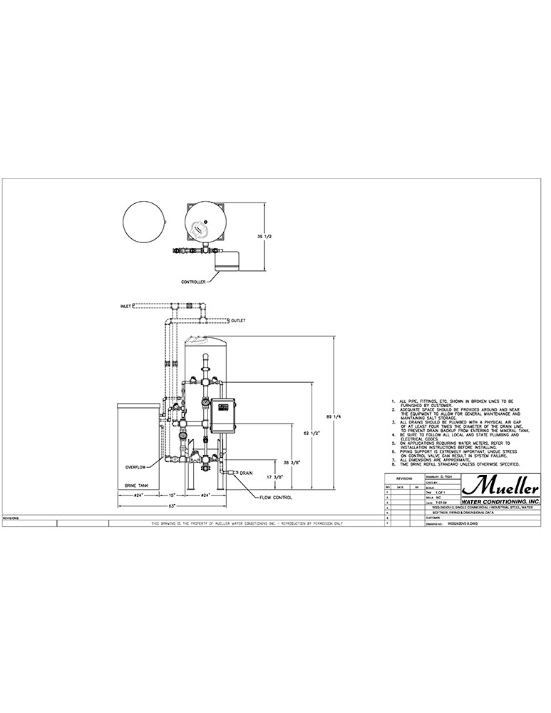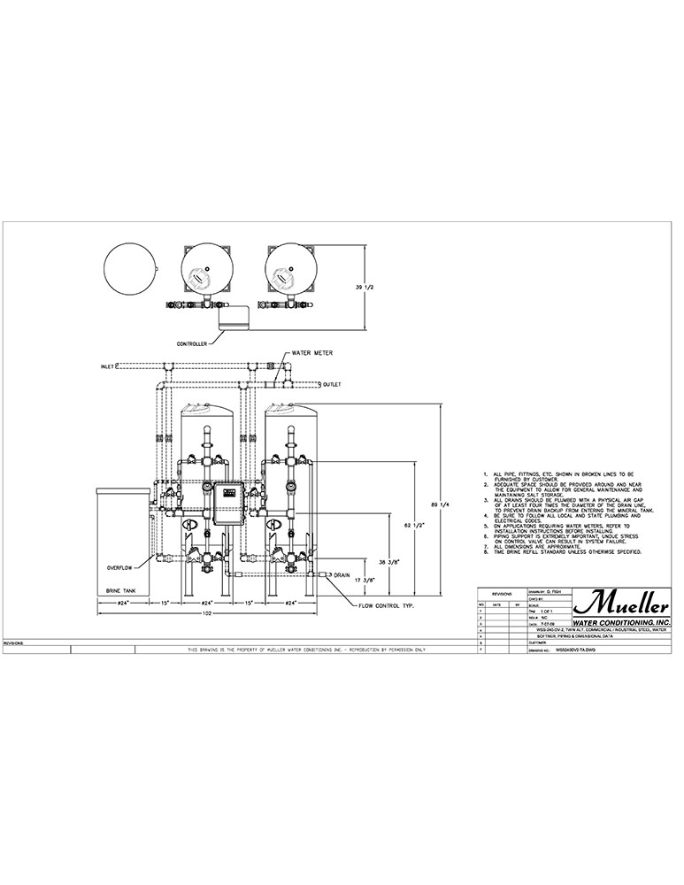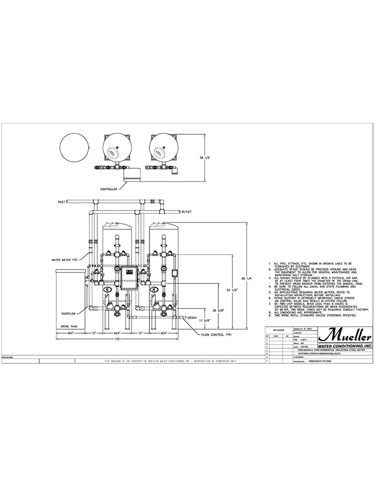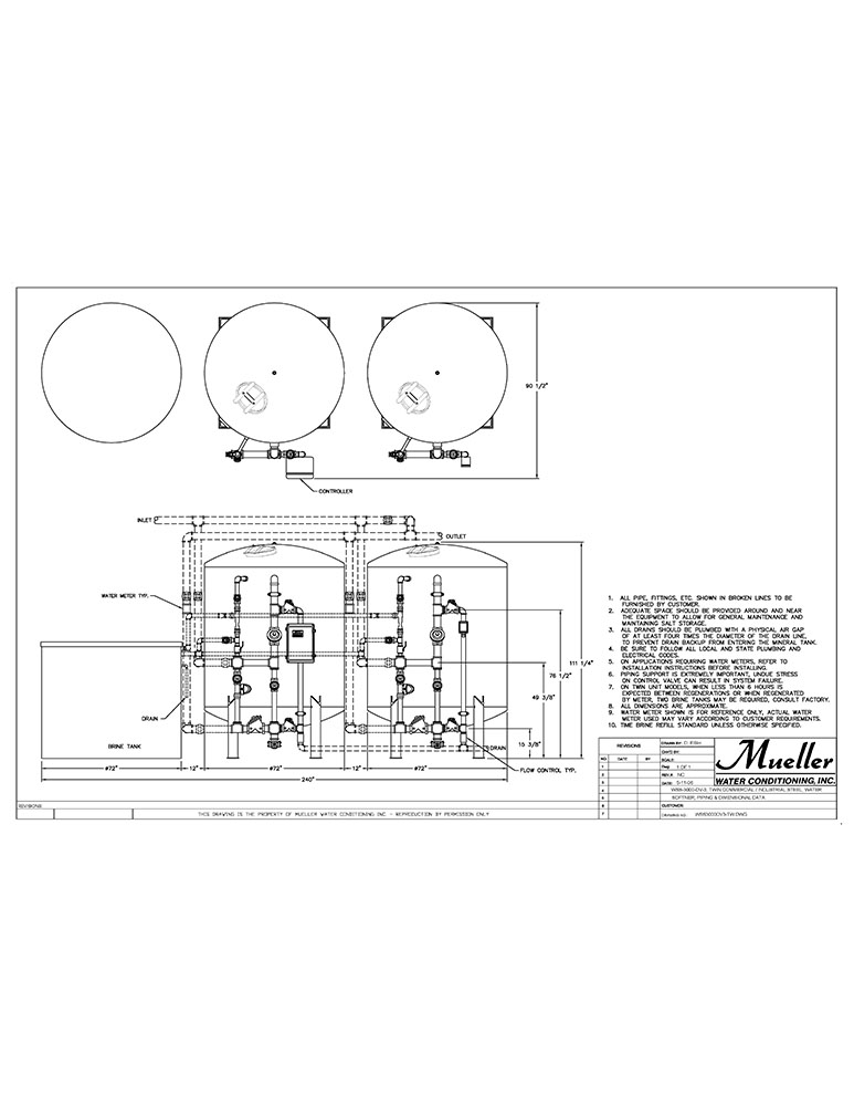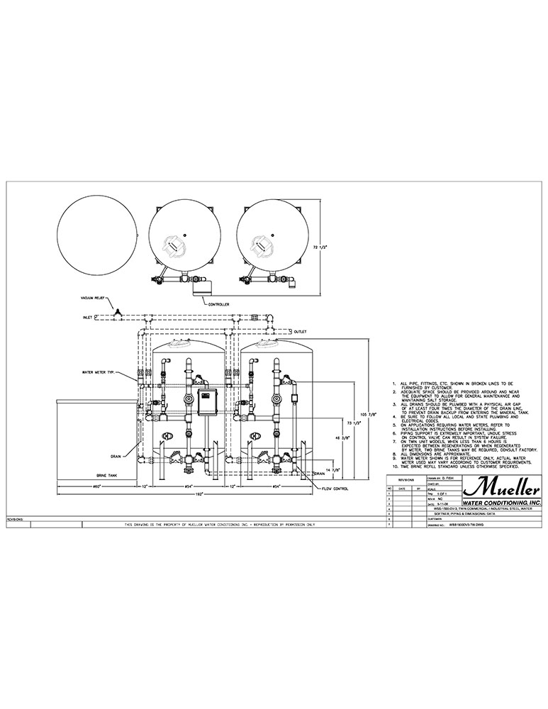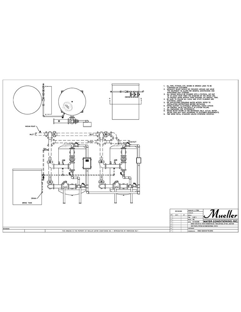 Drawing-Steel series softener, 750,000 grain exchange, twin-alt. model, 3" inlet/outlet
