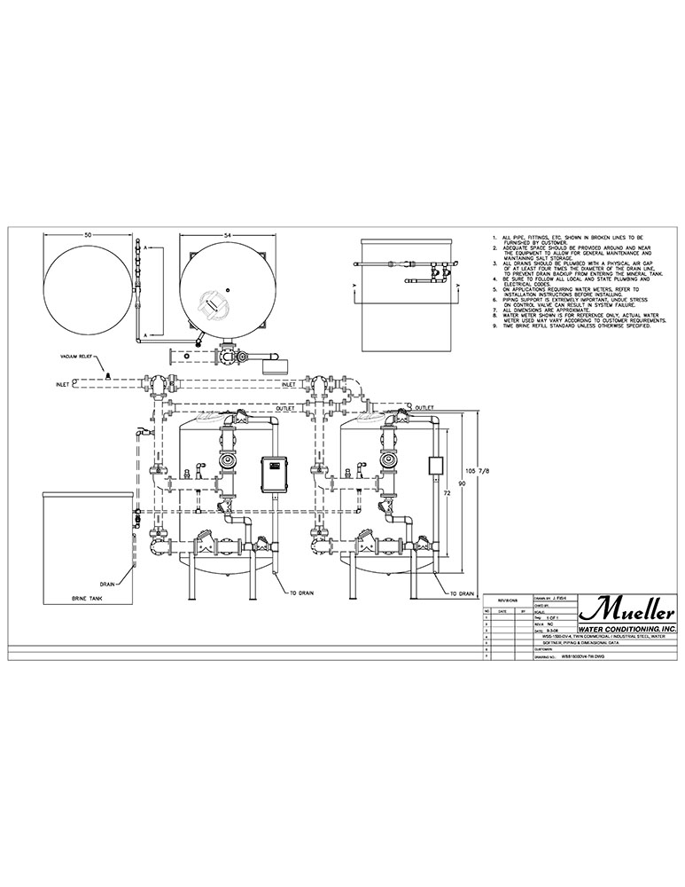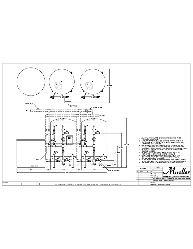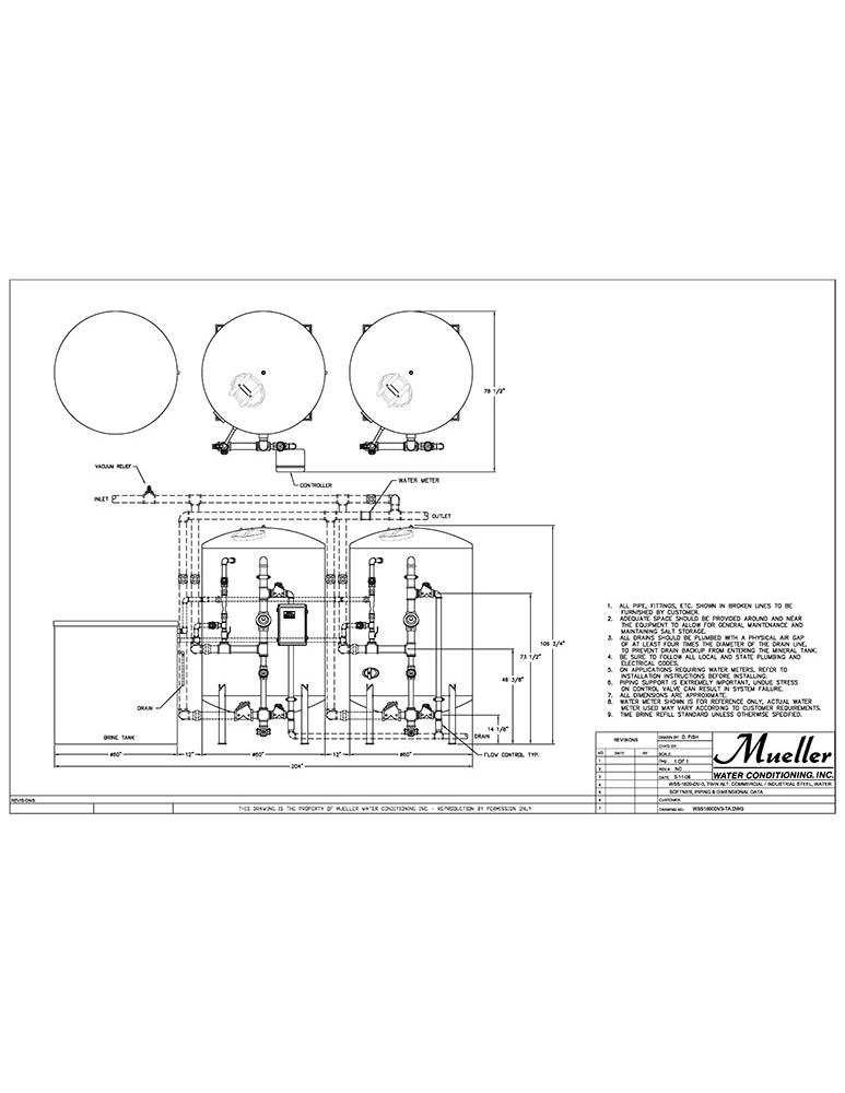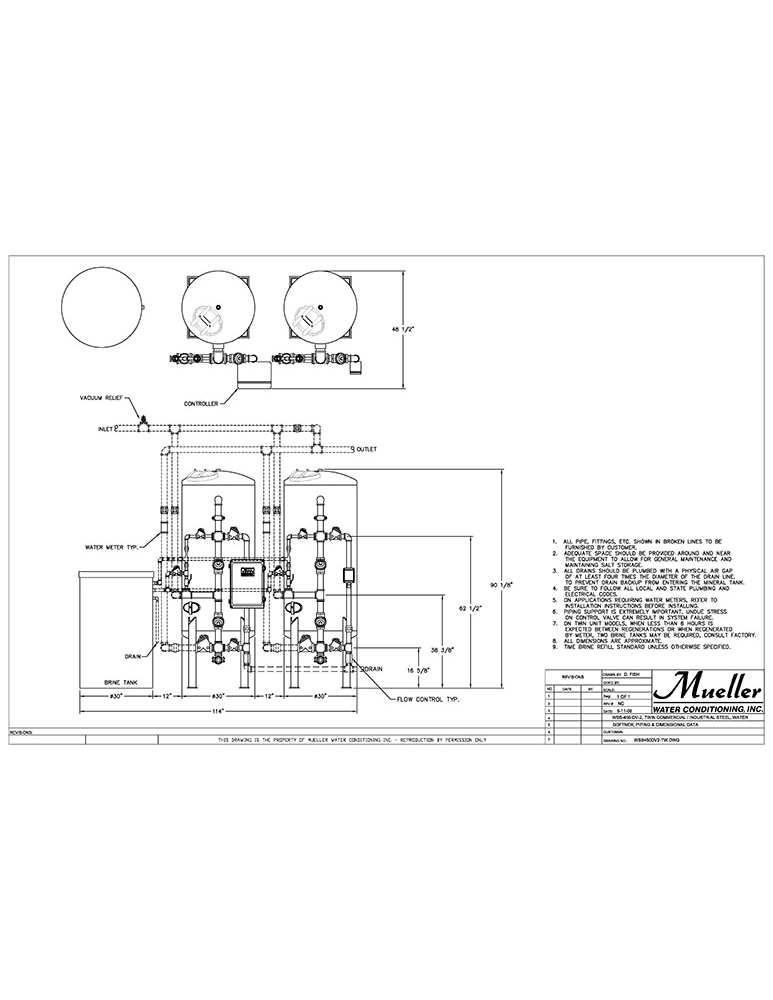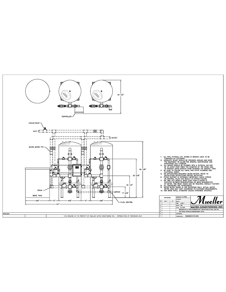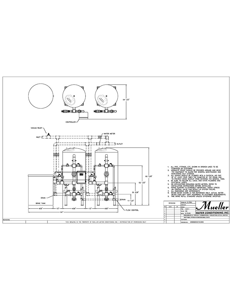 Drawing-Steel series softener, 900,000 grain exchange, twin-alt. model, 3" inlet/outlet