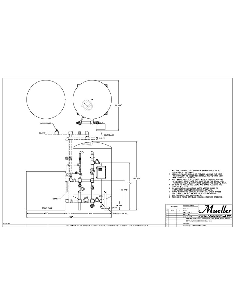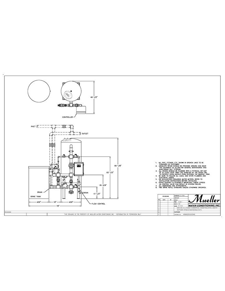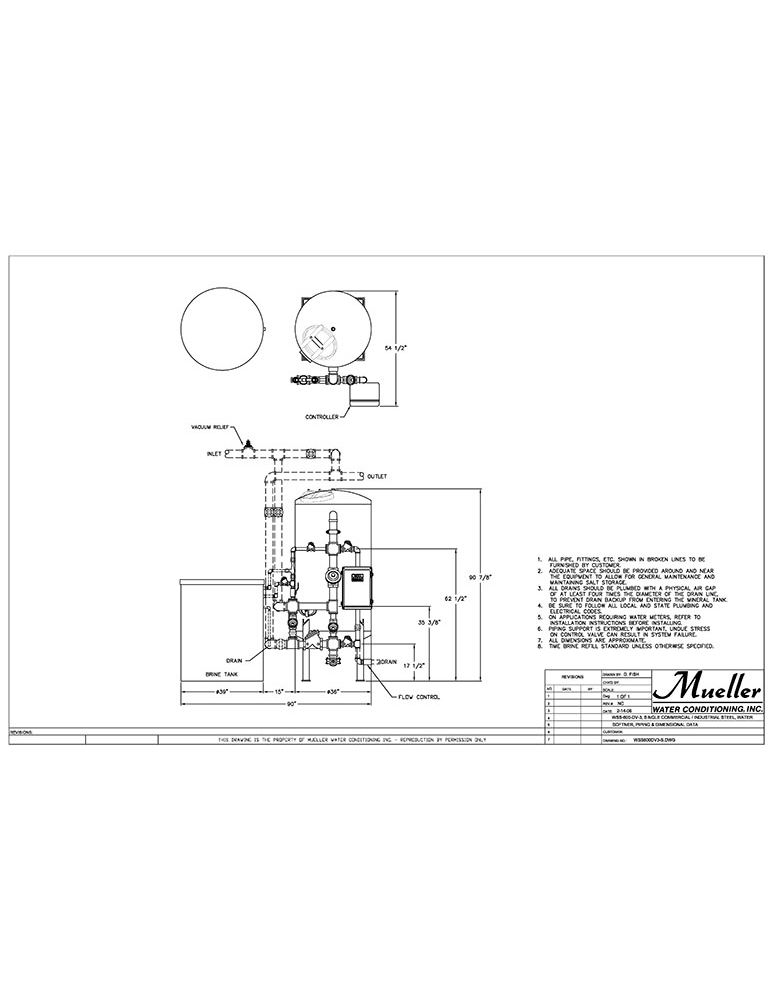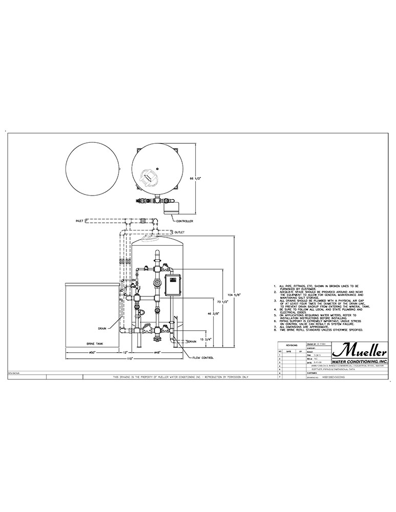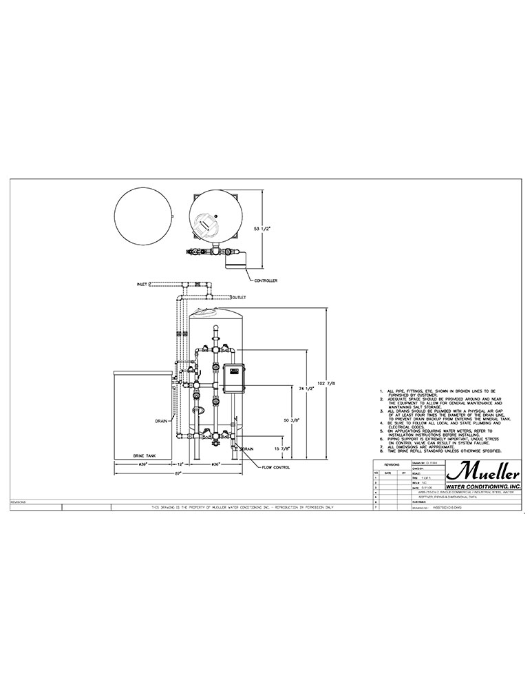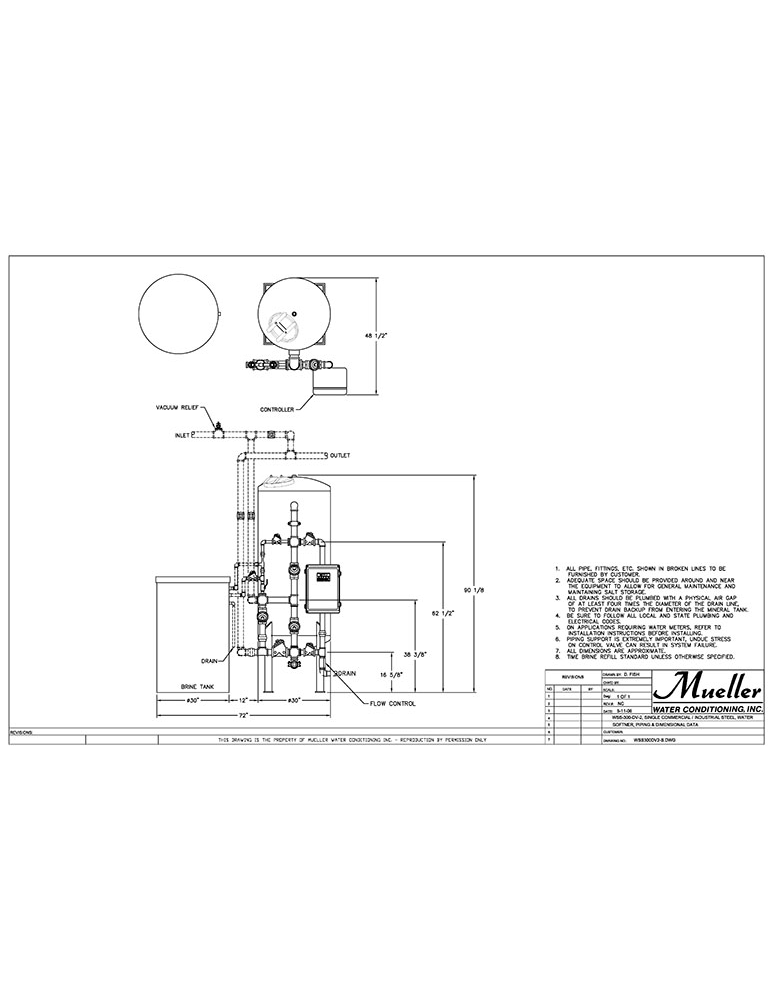 Drawing-Steel series softener, 900,000 grain exchange, twin-alt. model, 3" inlet/outlet